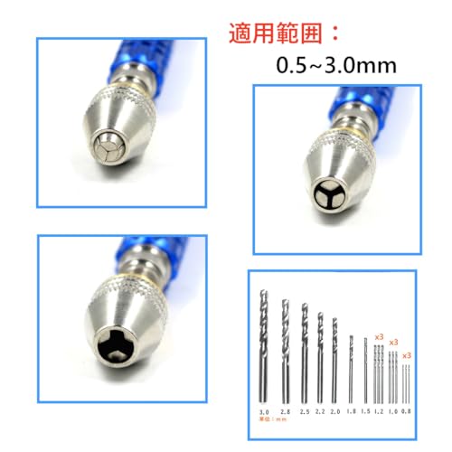 後述のトリプルピンを刺す場合、穴の最適値は3.2mmなのですが市販の廉価なドリル付きピンバイスはドリル直径3.0mmまでのものしかありません。