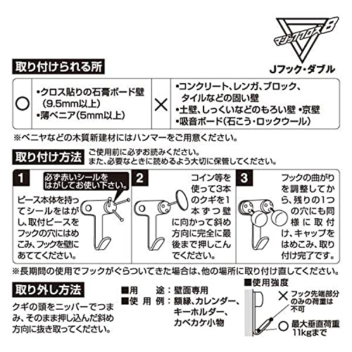 トリプルピン は、石膏ボードもしくはベニヤ下地の壁天井に設置できる引き抜き防止のピンで、メーカー耐荷重は1個あたり約2.7kgです。なお、製品付属のフックは使いません。トリプルピンの単品売りはあっても割高で、けっきょく紹介したフックセットが1ピンあたり約65円と最安になります。