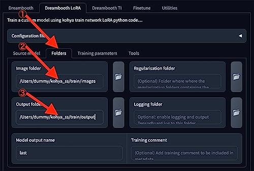 /Users/dummy/kohya_ss/train/output続いて③Output folder欄に上記をコピペしてください。