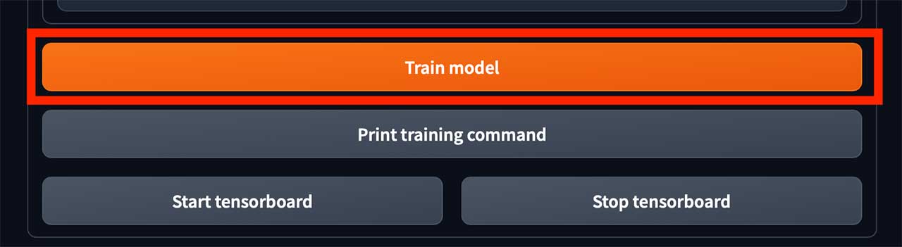 上記画面のようにkohya_ssの下部にある Train model ボタンを押して学習を開始します。
