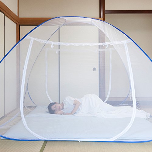 問題は設置手間ですが、今はワンタッチで設置折りたたみできるポップアップ蚊帳があるのでだいぶ楽です。